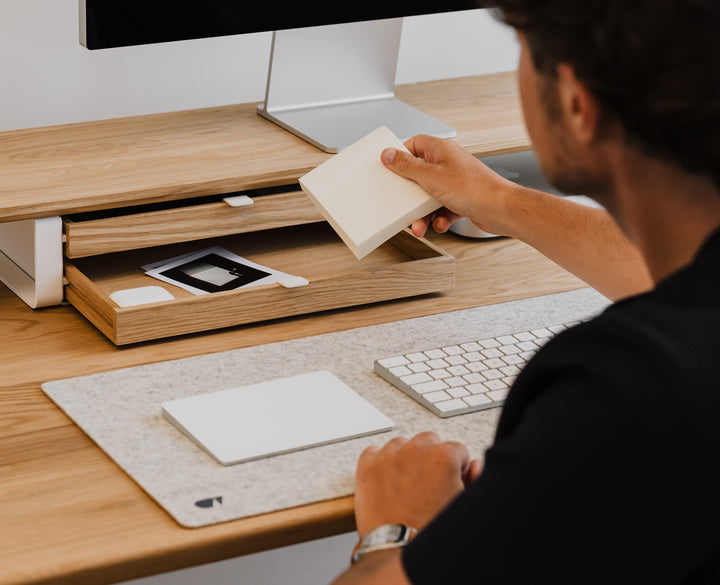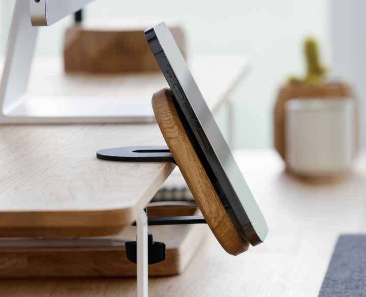 Créez une organisation parfaite de votre bureau grâce à nos accessoires pratiques, compatibles avec nos étagères de bureau. Les plateaux en bois de différentes tailles vous aideront à organiser tous les objets essentiels que vous souhaitez garder à portée de main, tandis que le support MagSafe rendra l'utilisation de votre iPhone plus pratique que jamais.