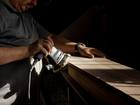 Biurko najlepiej czyścić miękką ściereczką, wzdłuż słojów. Po usunięciu większych pyłków i okruchów, przetrzyj blat wilgotną szmatką. Od razu wytrzyj do sucha przy pomocy miękkiej ściereczki, również wzdłuż słojów. Jeżeli drewno wygląda na wyschnięte lub wyblakłe, przetrzyj je papierem ściernym (np. o gradacji 240), a następnie nałóż warstwę dowolnego oleju do drewna. Najlepszy będzie olej bezbarwny. Wypróbuj nasz Maintenance Kit, który pomoże ci skutecznie zadbać o drewniane produkty.