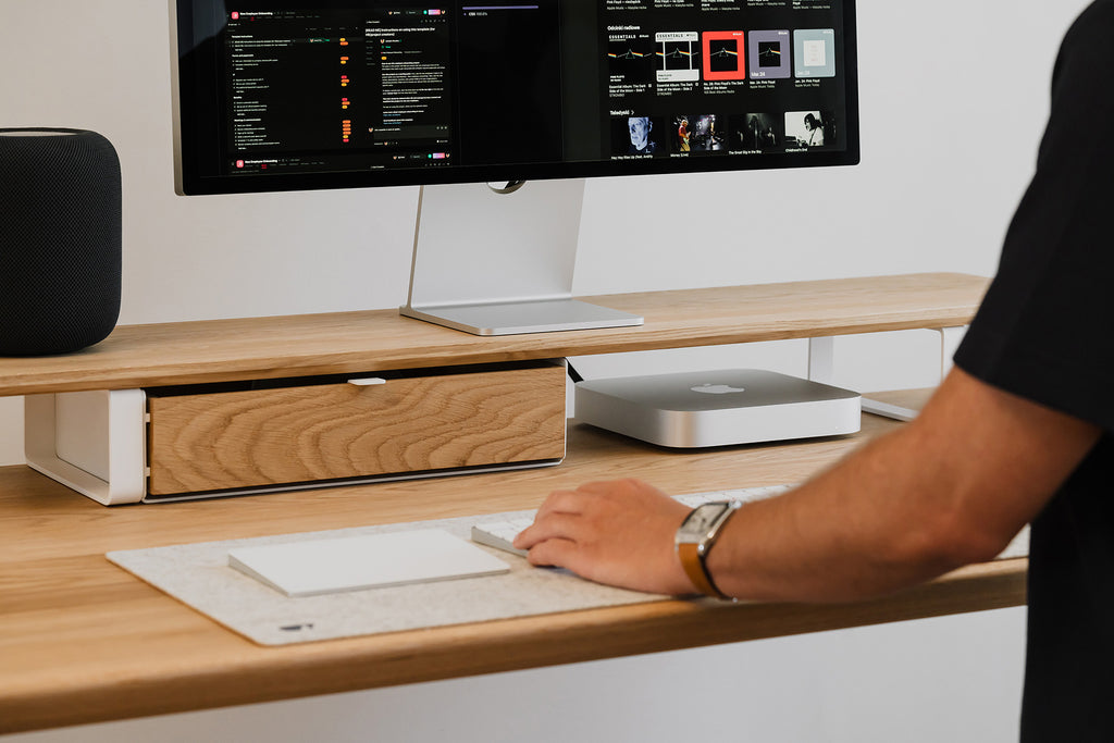 Sometimes I also advise our clients on workspace design. My favorite Oakywood products are: Standing Desk Pro, Dual Laptop Dock, and Magsafe iPhone Stand. On the other hand, for those who are just starting to set up a home office and don't have any of our products, I recommend the Standing Desk Shelf for a good start.