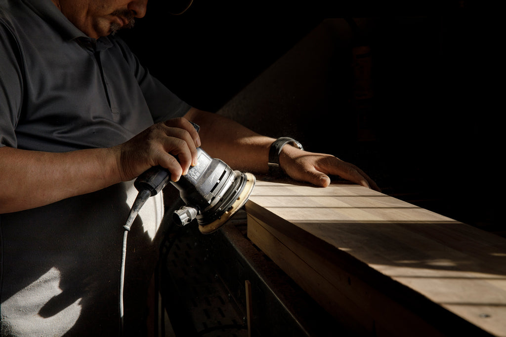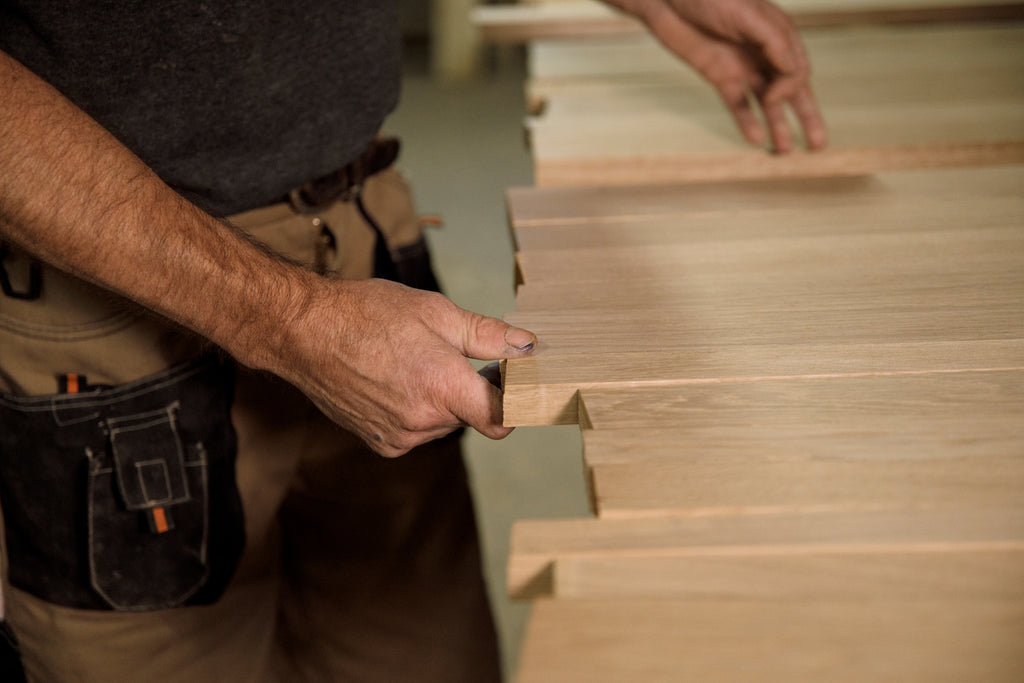 Solid wood products, to put it simply, are made from parts of a wooden log - cut and shaped by us. This material guarantees exceptional durability and strength. Veneer, on the other hand, is a material made of plywood, to which a thinner layer of wood is glued. It is lighter and cheaper than solid wood, but you must also take into account the fact that it may be slightly more susceptible to mechanical damage and excess moisture.