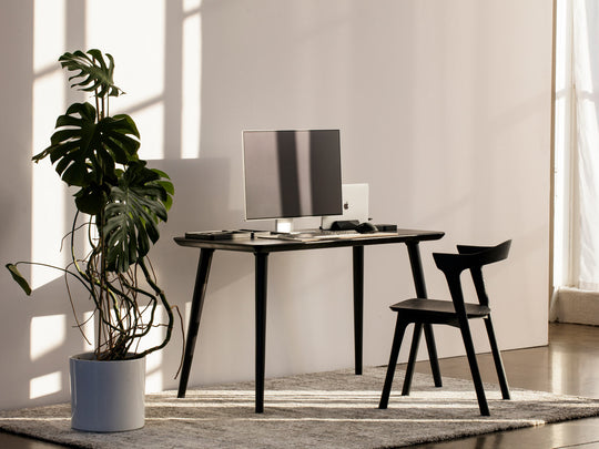 An ergonomic desk height ensures your elbows form a 90-degree angle, with your feet flat on the floor, which helps prevent strain and promotes good posture. To easily find your ideal desk height, try using this online desk height calculator.