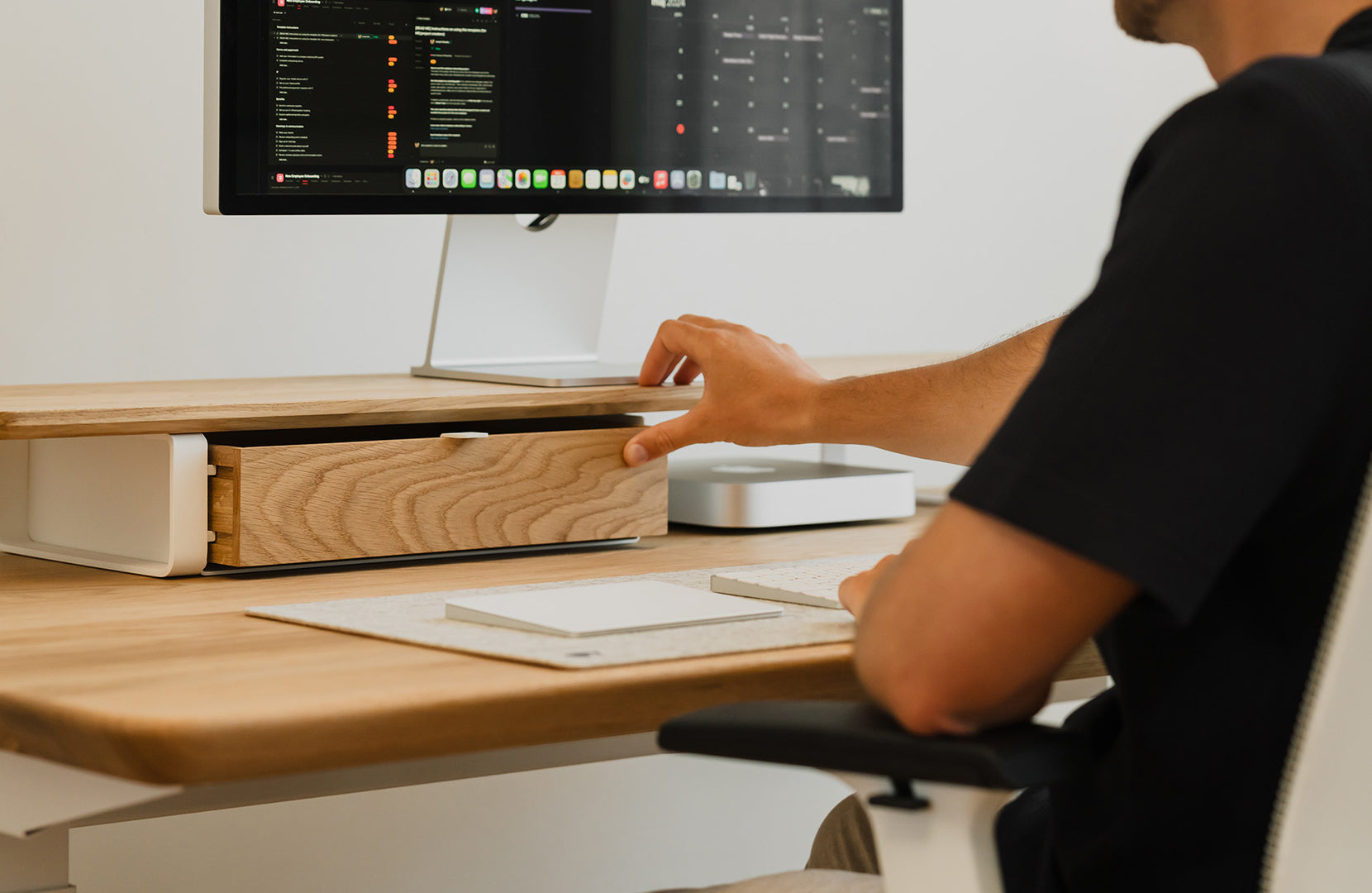 Oakywood’s desks elevate the quality of your home office setup. Functional design, fine materials, and meticulous craftsmanship are only some of its strengths. Choose your desk in a classic version or with height regulation and tailor it to your needs in our configuration tool.